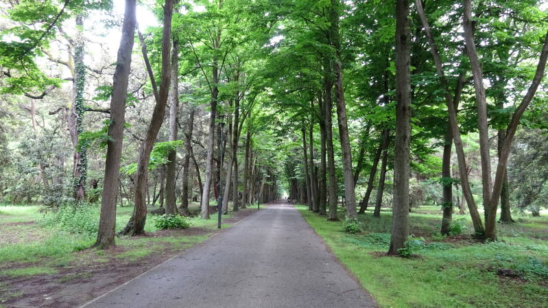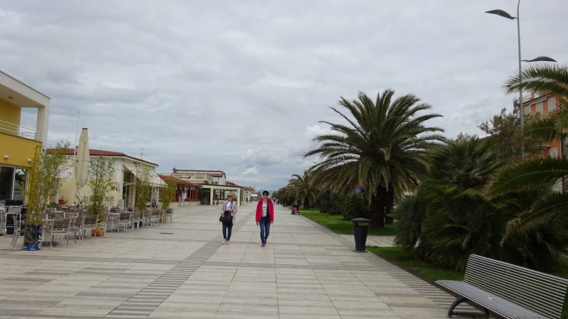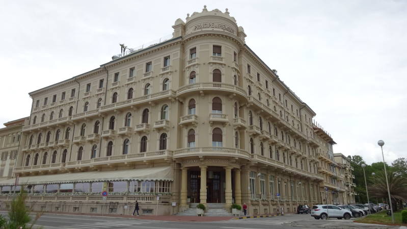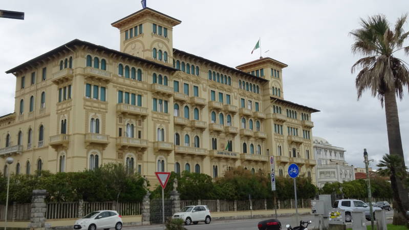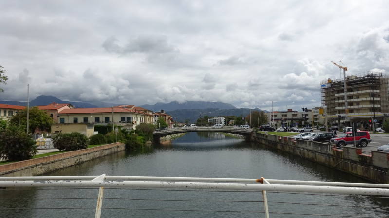 Wanneer ik opsta is het stralend en schijnt de zon vrolijk door de rolluiken naar binnen. Lekker, ik doe de ramen open voor wat frisse lucht. De lucht is inderdaad fris… ik poets mijn tanden en kleed me aan, wil de ramen weer dicht doen en zie dat het in ene weer zwaar bewolkt is geworden. Jeetje, het weer is echt erg veranderlijk… het begint zelfs weer een beetje te regenen. Ik besluit deze dag even lekker voor mezelf te houden. Geen Lucca nog vandaag, dat zou een beetje zonde zijn. Zulke steden zie ik liever met een stralende lucht. Overigens ben ik nog een beetje moe ook. Ik geniet lekker langzaam van mijn ontbijt en spreek het echtpaar uit Ierland nog even. Zij gaan vandaag naar Florence. Uiteraard vragen ze ook naar mijn plannen en ik geef aan dat ik de omgeving maar eens ga verkennen. Mocht het weer dan echt slecht worden kan ik altijd weer naar het hotel terug of mocht het mooier worden dan kan ik altijd even lekker met een boek op het strand liggen. Gelukkig is het niet al te koud wanneer ik aan mijn wandeling begin. Ik loop door het grote park van Viareggio achter het hotel. Een goede plek volgens mij om in de avonduren of wanneer het overdag te heet wordt even af te koelen onder het gebladerde van enorme bomen. Je kunt er fietsen huren, er is een speelterrein en wat attracties voor de kinderen en een heel groot restaurant. Niet alles is nog open. Men is nog bezig om dingen op te knappen en de veldjes te maaien etc. Er wandelen veel mensen, maar geen tot weinig toeristen hier. Een prachtige laan met zijpaadjes. Veel hondjes rennen vrolijk rond. De Italianen hier zijn duidelijk dol op hun viervoeters. Gedurende mijn verblijf kom ik maar 1 zwervertje tegen. Ook geen zwerfkatten gezien trouwens. Niet ver van het hotel ontdek ik een trimsalon die druk bezocht wordt en ik kom ook diverse dierenzaken tegen met luxe artikelen.
