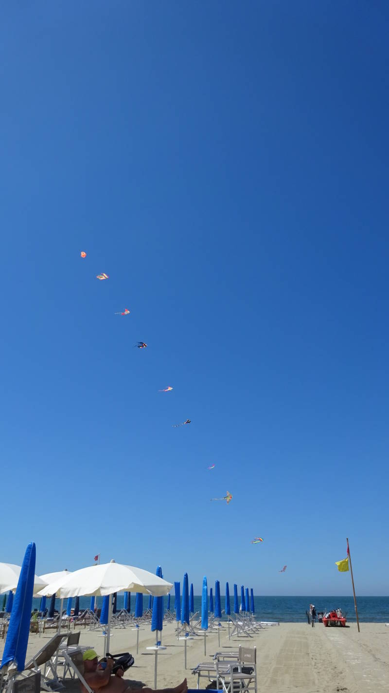 Het is een zonnige ochtend en mijn laatste dag in dit hotel. Ik neem het er even van vandaag. Na de lange dag van gisteren, is het tijd voor een beetje luieren. Ik had een boek meegenomen, maar er is nog geen letter uit gelezen. Ik ga naar de beachclub tegenover het hotel. Deze is net open en gratis toegankelijk voor de gasten, hoewel gratis nogal relatief blijkt. Het is wel grappig om te zien dat de Italianen het hele jaar hun strandspullen achterlaten in kleedhokjes die je kan huren. Hele stapels speelgoed etc.